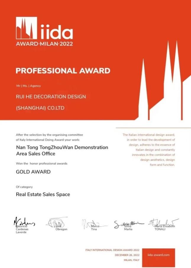 盛和房產通州灣灣上文華示范區售樓處設計方案榮獲2022意大利IIDA AWARD國際設計大獎地產售樓類金獎
